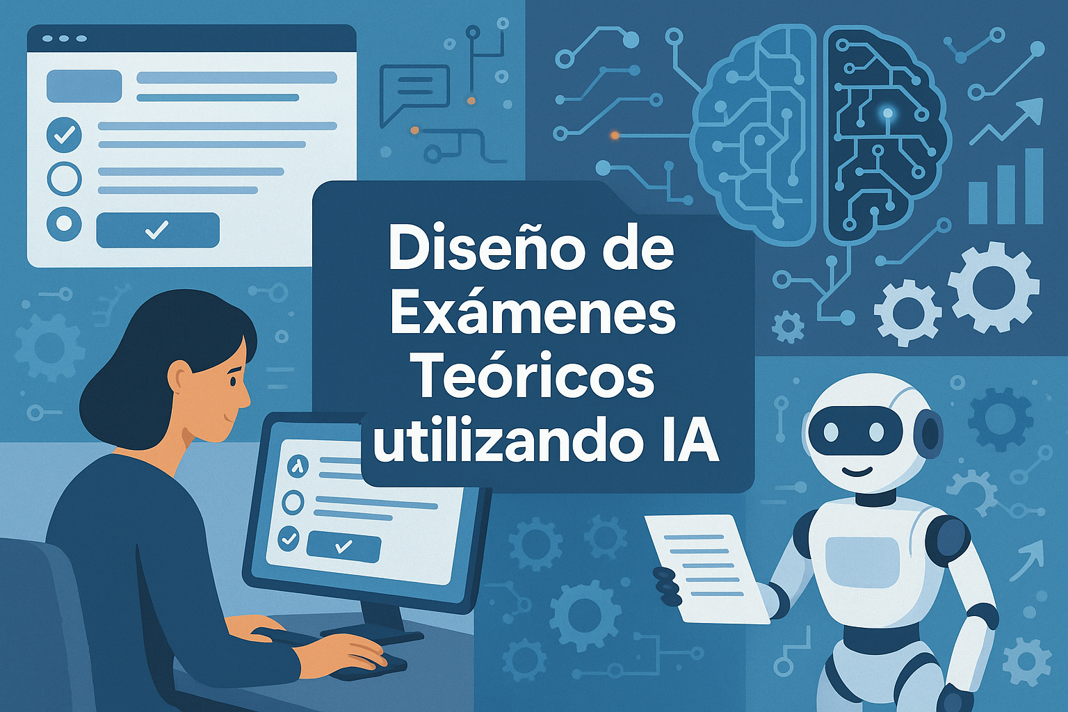 El taller de Diseño de Exámenes Teóricos Utilizando Inteligencia Artificial tiene como objetivo capacitar a los docentes en el uso de herramientas de inteligencia artificial como ChatGPT y Gemini para la creación y corrección de exámenes teóricos. Durante el curso, se exploran temas clave como los fundamentos de la evaluación educativa, el uso de IA para generar preguntas y personalizar exámenes, así como la automatización del proceso de retroalimentación y corrección de respuestas. Los participantes aprenden a integrar estas herramientas en plataformas educativas como Moodle, y deben diseñar un examen teórico, corregirlo de manera automática y proporcionar retroalimentación personalizada como parte de su evaluación final. El taller está diseñado para ser flexible, con modalidad virtual y una duración de 40 horas.